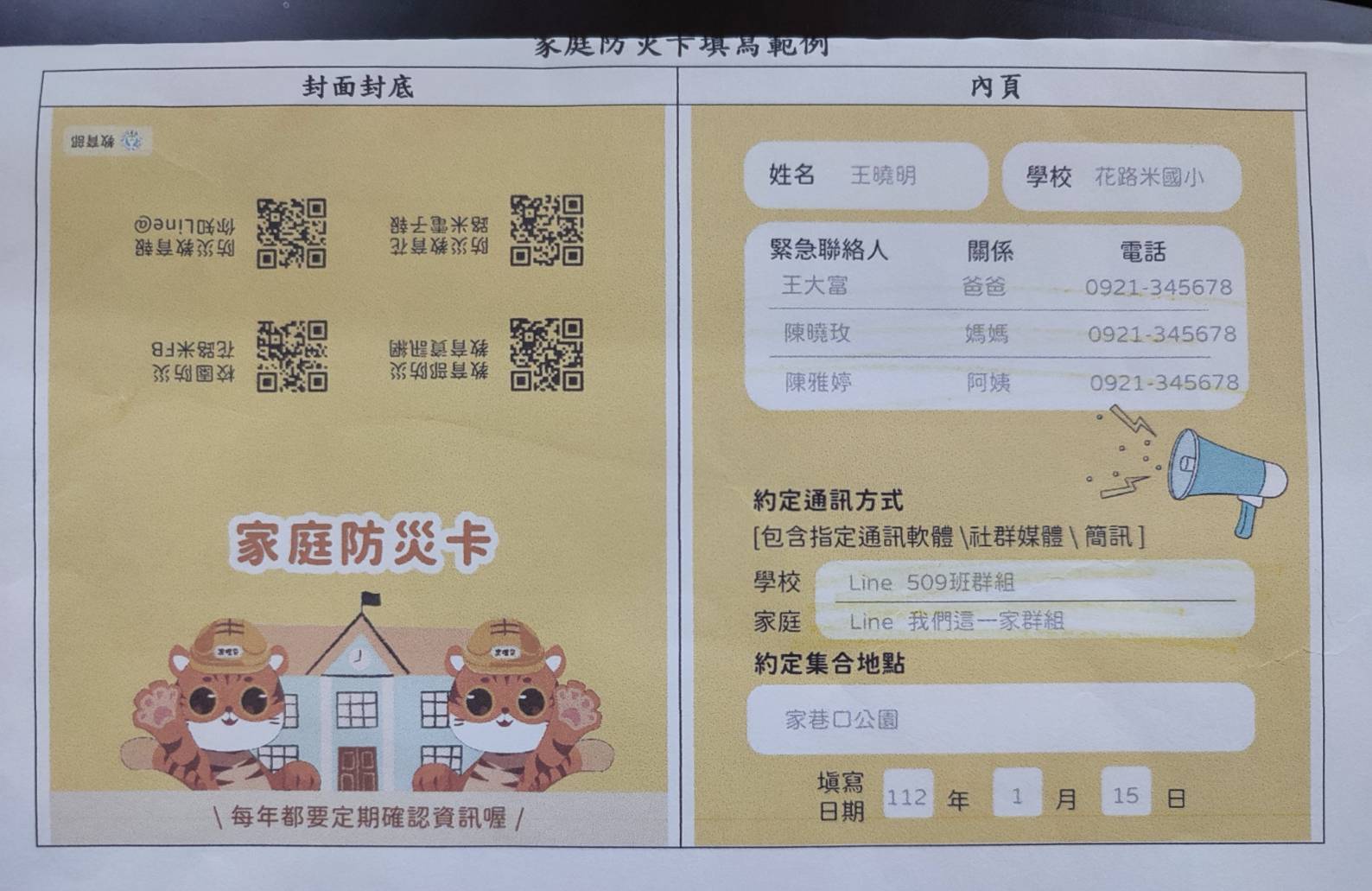 115年新版家庭防災卡範例說明